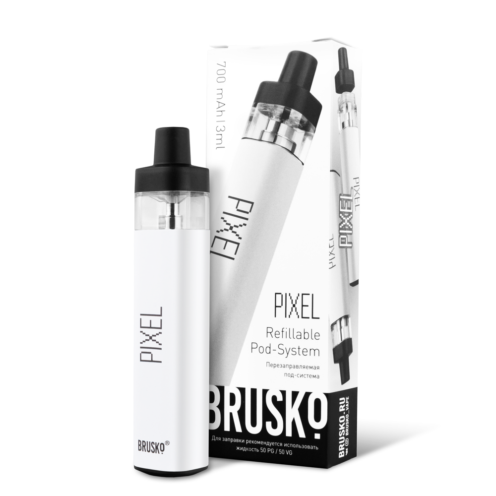 Перезаправляемая Под-Система Бруско Пиксель (Brusko Pixel) 700 mah, Белый - купить в Качканаре